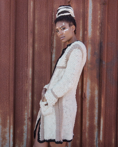 Esta colección representa y evoca a la fuerte África, sus rasgos y sus colores terrenales. Mostramos esa mujer fuerte e independiente. Se destacan cortes en las prendas con acentos de colores y juego de texturas ricas en tejidos. Como protagonista de la colección se presenta la combinación del cobre con piedras y lana, lo cual remite a nuestra conexión con la Tierra y a nuestra energía interna.